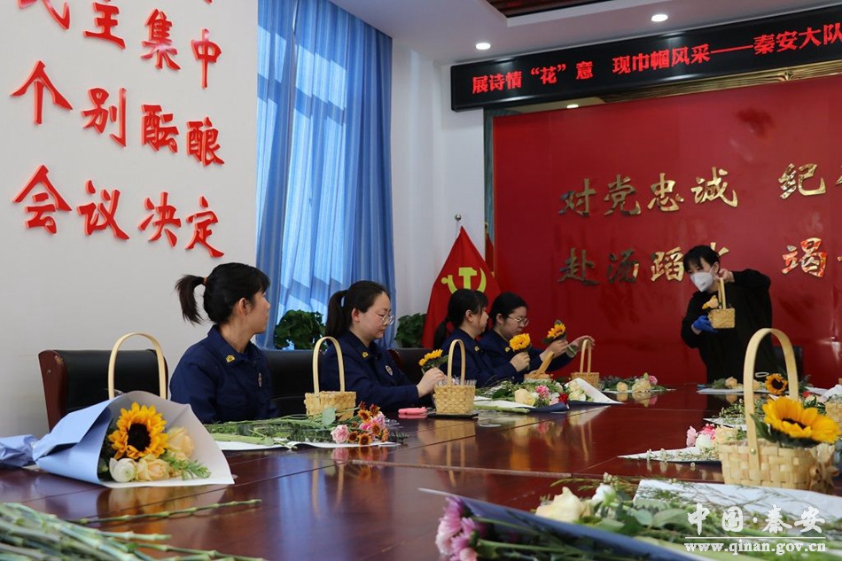 阳春三月,柳暖花春。在第113个国际劳动妇女节到来之际,为进一步激发广大女同志履职尽责、爱岗敬业的工作热情,全面展示新时代“火凤凰”的新风貌。3月8日,秦安县消防救援大队组织开展“展诗情‘花’意 现巾帼风采”艺术插花活动。