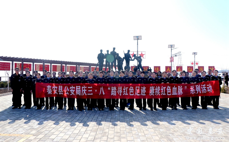为深入学习宣传贯彻党的二十大精神,扎实开展全省“三抓三促”行动,进一步丰富警营文化生活,落实暖警爱警举措,不断丰富警营文化生活,激励广大女警立足岗位,彰显巾帼之美,激扬巾帼之志,奉献巾帼之力,增强女警的活力和凝聚力,3月8日,秦安县公安局组织开展了以“踏寻红色足迹 赓续红色血脉 ”为主题的系列庆祝“三八”国际劳动妇女节活动。