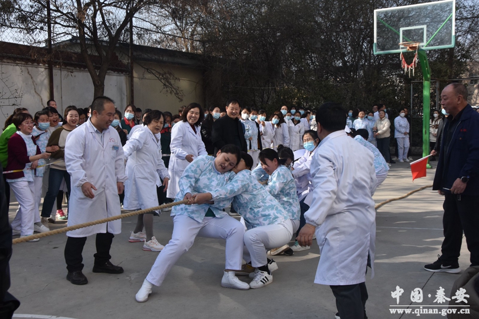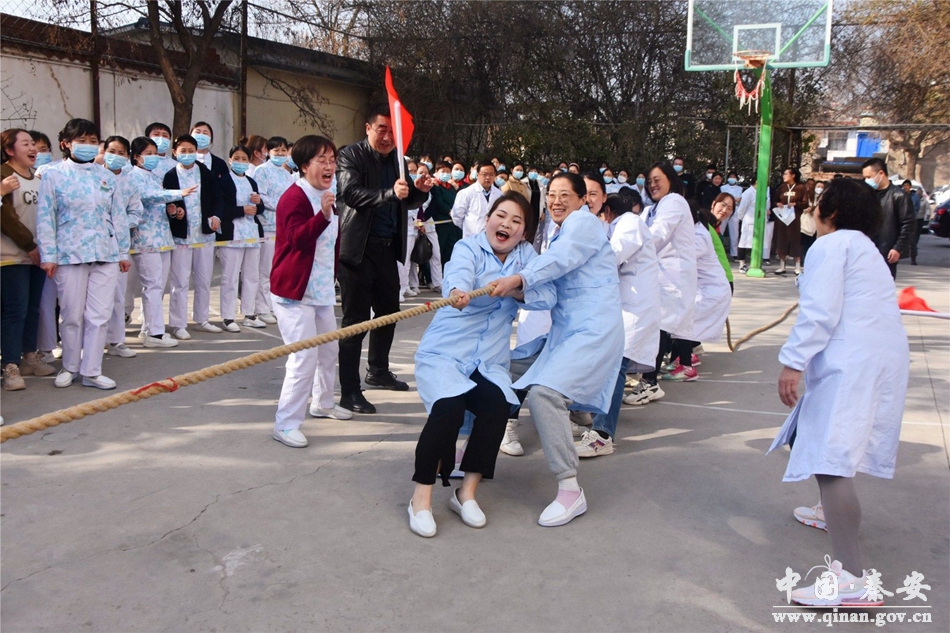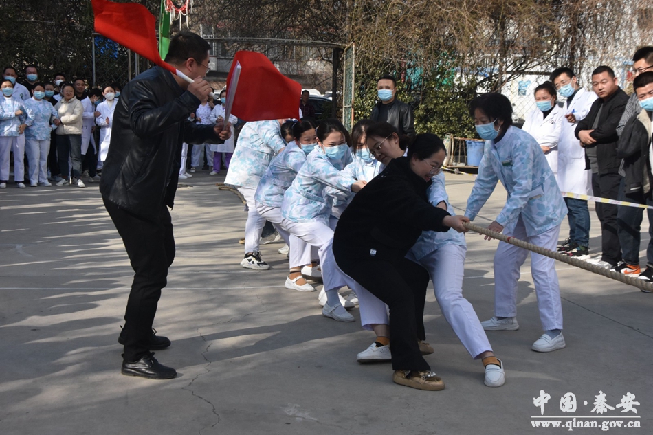 阳春三月春意浓,巾帼魅力绽芳华。为丰富医院职工文化生活,展现职工团结、奋进、健康的精神风貌,激发职工爱岗敬业、乐于奉献的精神,3月6日,秦安县人民医院工会、妇工委组织的庆祝“三八”国际劳动妇女节女职工拔河比赛拉开序幕。天津市津南医院专家、秦安县人民医院帮扶院长郝海泉主持活动,天水市第一人民医院专家、秦安县人民医院挂职副院长赵春霞作了致辞,县妇联相关负责人应邀参加比赛。