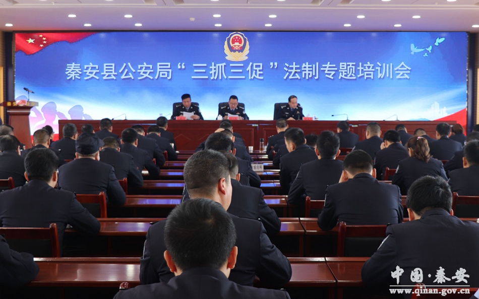 为全面落实全省“三抓三促”行动,进一步提高民警法律素养,推动全局执法办案质量再上新台阶,切实提高秦安公安队伍整体执法水平和法制监督员队伍的履职能力,激发广大民警在执法规范化建设工作中的热情,3月3日,秦安县公安局举办了“三抓三促”法制专题培训会。县政府副县长、县公安局党委书记、局长薛天胜,局相关负责人,各警种部门负责人、各办案单位法制监督员、办案民警参加。