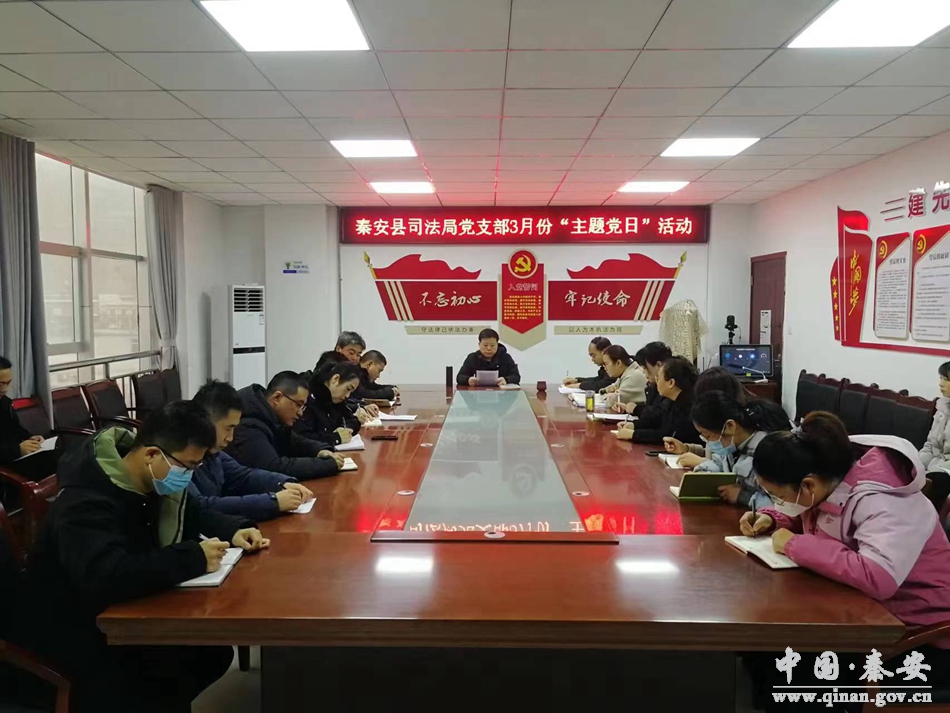 为深入学习贯彻党的二十大精神,秦安县司法局党支部以“三抓三促”行动为主抓手,不断推动“主题党日”走深走实,3月3日,组织全体党员开展3月份“主题党日”活动。