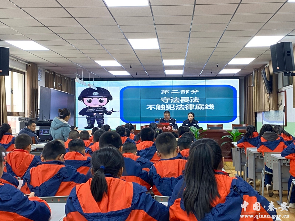 为深入贯彻落实全省“三抓三促”行动精神,进一步普及法律知识,有效遏制、减少青少年违法犯罪行为,提升青少年自我保护防范意识,近期,秦安县公安局秦南派出所组织民警开展校园法制宣传教育活动。