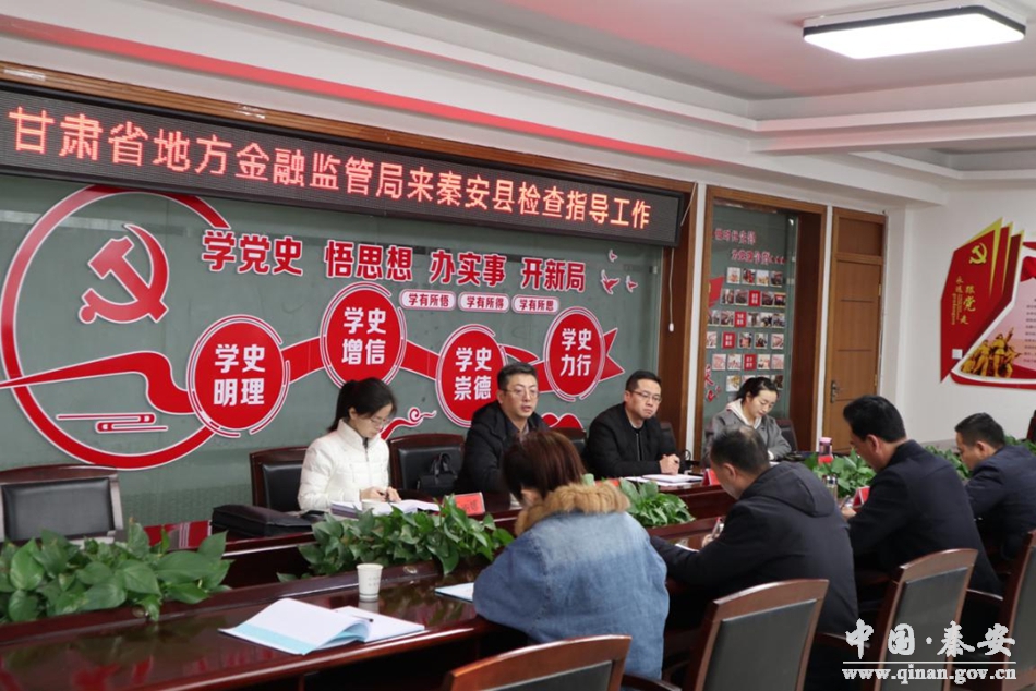 3月1日,省金融监督监管局金融四处四级调研员郭旭来秦安县督导检查县属融资担保公司情况。省金融监管局主任科员王丽娜,市金融办金融一科科长陈文熙、二级主任科员吕朝霞一同检查。