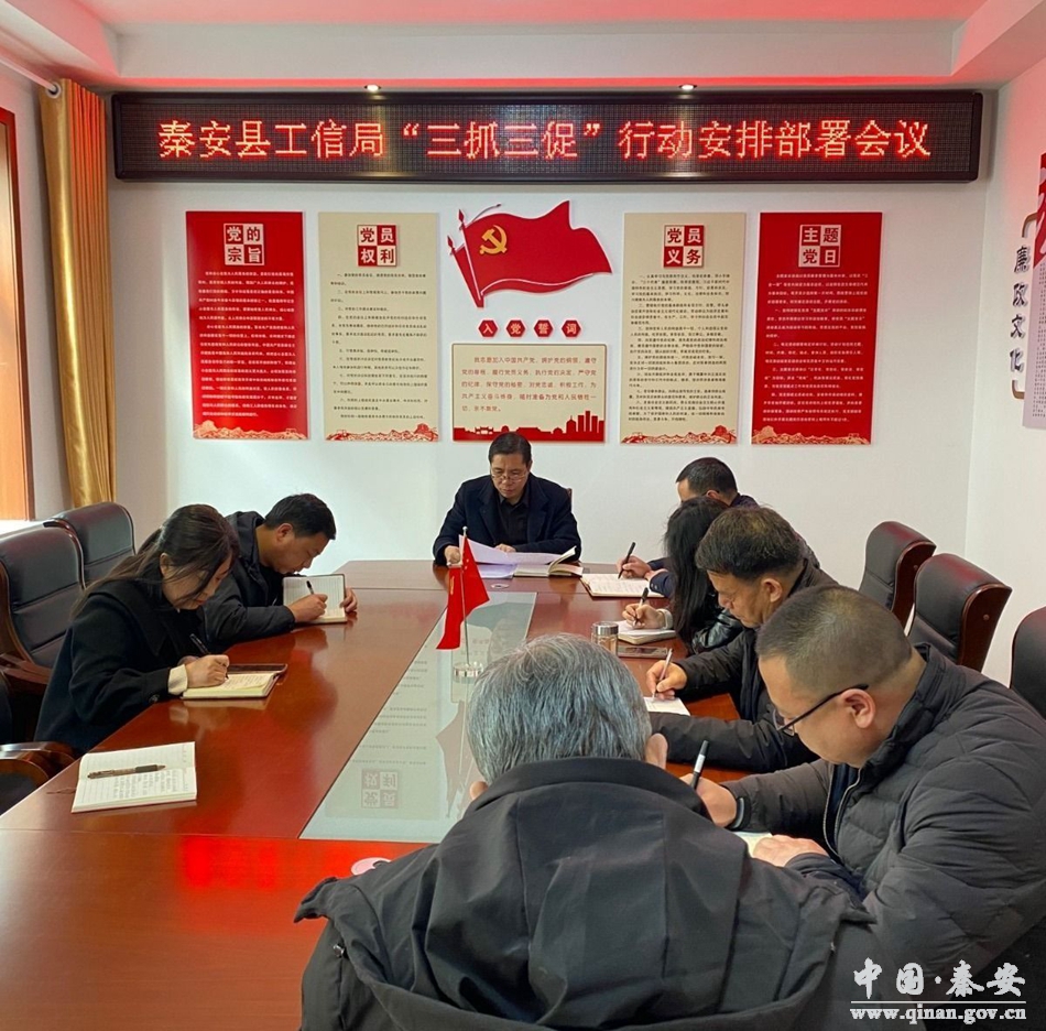 2月24日,秦安县工信局召开“三抓三促”行动动员部署会议,传达学习全省“三抓三促”动员部署会议精神,宣读《秦安县“三抓三促”行动实施方案》,安排部署工信系统“三抓三促”重点工作任务。局领导班子成员,各股室及局全体工作人员参加会议。