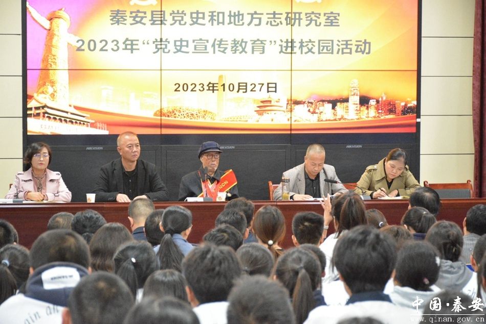 为了深入贯彻落实习近平总书记关于对党史研究工作的重要论述和省委书记胡昌升在省委党史研究室调研时的讲话精神,紧紧围绕全县中心大局,聚焦主责主业,进一步加强青少年学生理想信念和思想政治教育,持续深化革命传统教育,传承红色基因,讲好党的故事、革命的故事、英雄的故事。10月27日,秦安县委党史和地方志研究室以“三抓三促”行动为契机,在秦安县职业学校开展“党史宣传教育”进校园活动,为师生们上了一堂生动的党史学习教育课。县委党史和地方志研究室、县职业学校领导班子和部分教师学生220余人参加活动。
