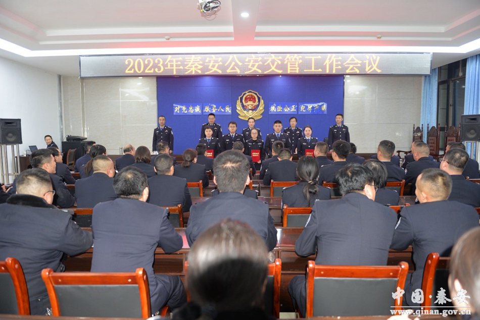 会议在雄壮的国歌声中拉开帷幕。会上,传达了习近平总书记对政法工作批示指示精神和全省公安局长会议精神,全市公安局长会议精神和市公安局党委书记、局长郭庆祥对秦安公安的批示精神,县委书记周济在全县“抓创建促提升强县域”行动启动大会暨创建全国文明城市工作动员大会上的讲话精神;宣读了《2022年“减量控大”和“一表考”工作情况通报》和关于表彰在2022年度全县公安交管工作成绩突出先进个人的决定。