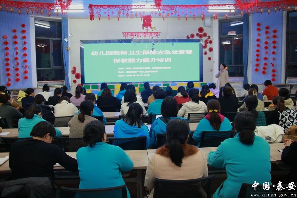 为提高幼儿园卫生保健业务规范化程度,增强教职工卫生保健应急处置能力,优化幼儿在园健康生活环境,近日,秦安县第一幼儿园组织开展卫生保健应急处置暨保教能力提升培训。县一幼班子成员、一线教师、保育员、后勤工作人员等100余人参加培训。