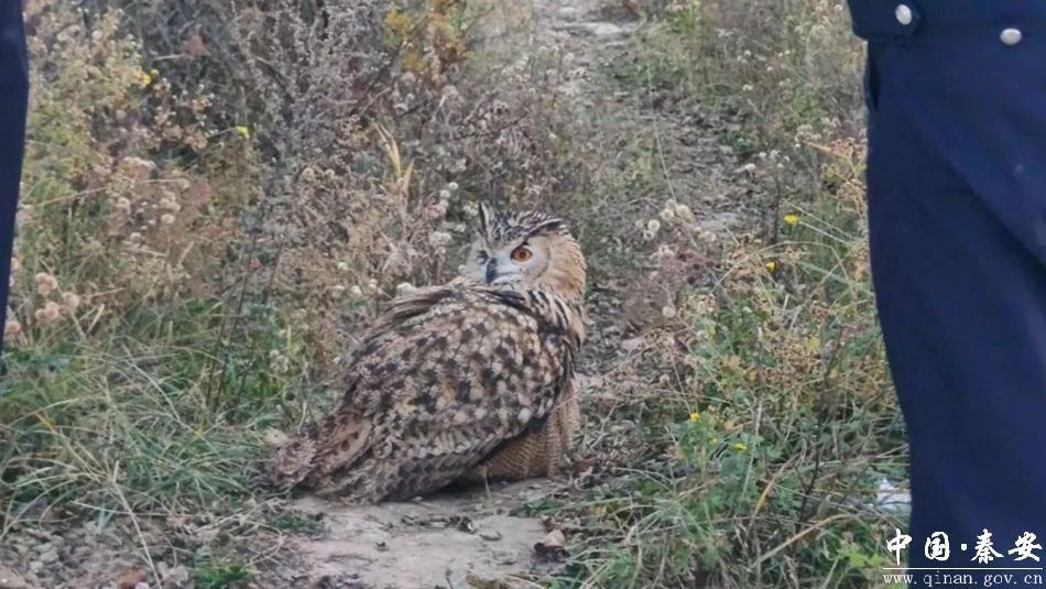 近日,秦安县莲花镇的一名群众在前往田地干农活的时候,途经老鹰山时发现一只猫头鹰爬在地上一动不动,为保障它的安全,该热心群众便拨打了“110”报警电话。