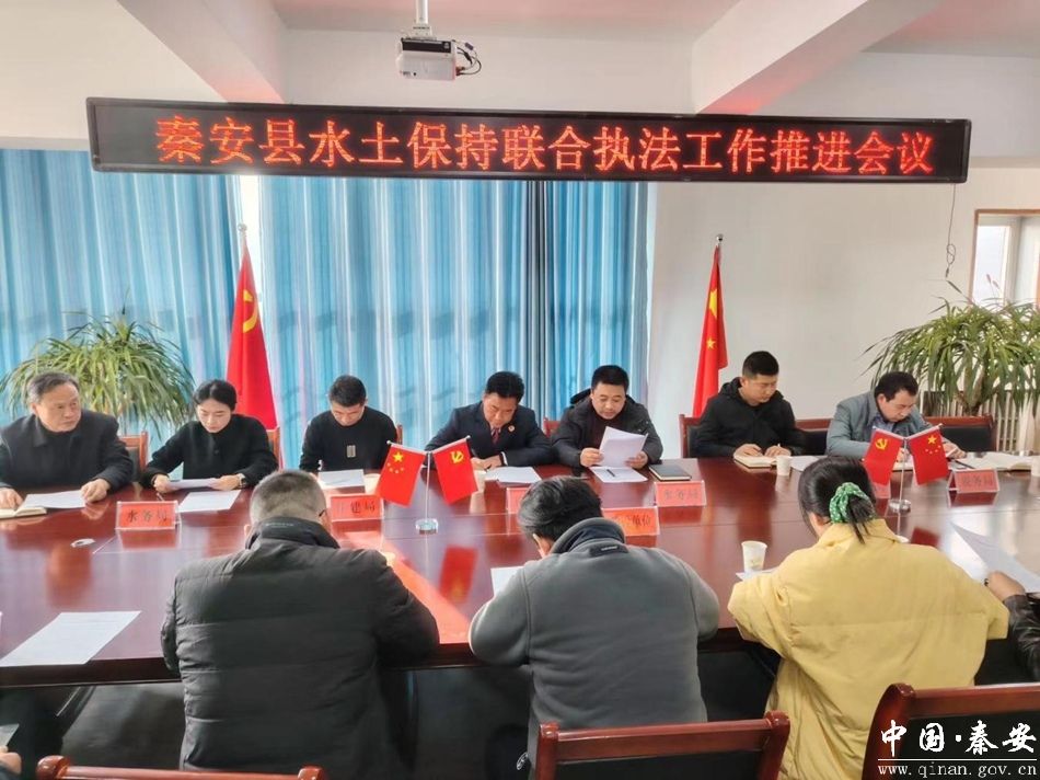 为深入贯彻落实《水土保持法》,认真执行水土保持法律法规,强化水土保持预防监督,加大水土保持生态环境保护力度,进一步落实水土保持"三同时"制度,防止生产建设项目造成人为水土流失,强化部门协同监管,全面提升水土保持监督执法能力,11月24日,秦安县水土保持站联合县检察院、税务局、自然资源局、住建局多部门召开秦安县水土保持联合执法工作推进会议。