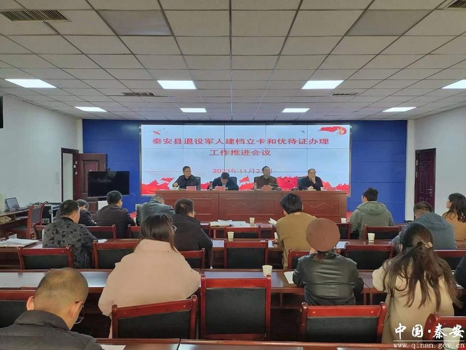 11月23日,秦安县召开退役军人事务工作推进会。传达学习省、市相关会议精神,通报全县建档立卡和优待证办理工作进展情况,安排部署建档立卡全覆盖和优待证办理清零工作任务。市、县退役军人事务局、退役军人服务中心有关负责人,以及各镇退役军人服务站站长和相关业务人员参加会议。