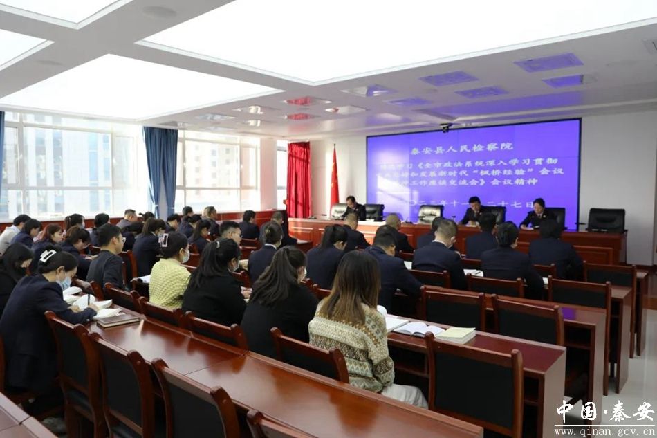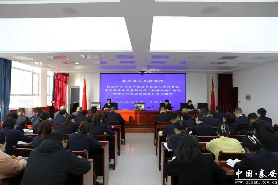 11月27日,秦安县人民检察院召开全院干警大会,传达学习全市政法系统深入学习贯彻中央坚持和发展新时代“枫桥经验”会议精神工作座谈会精神。全体干警参加会议。