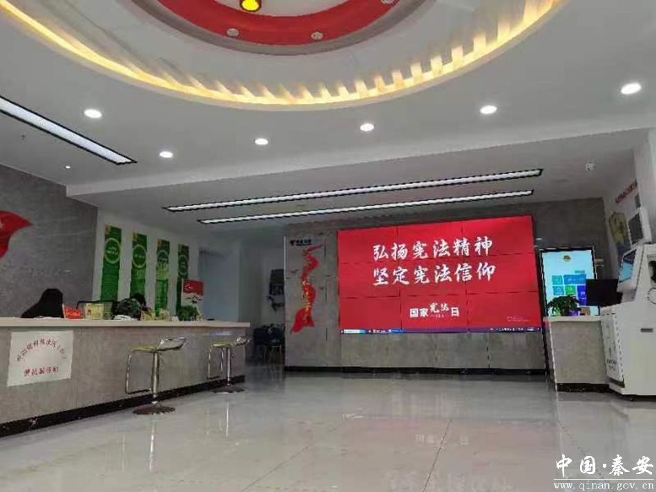 12月4日12:04分,秦安县在各级机关单位、政务大厅公共场所电子显示屏、服务窗口触摸屏和公共交通移动电视,以及各类公共场所电子显示屏同步点亮“弘扬宪法精神 坚定宪法信仰”,滚动播放“弘扬宪法精神、坚定宪法信仰”标语,形成了“万屏”共同宣传宪法,营造了尊崇宪法、学习宪法、遵守宪法、维护宪法、运用宪法的良好氛围,使宪法宣传走到群众身边、走进群众心里,为秦安县营造了良好的法治环境。