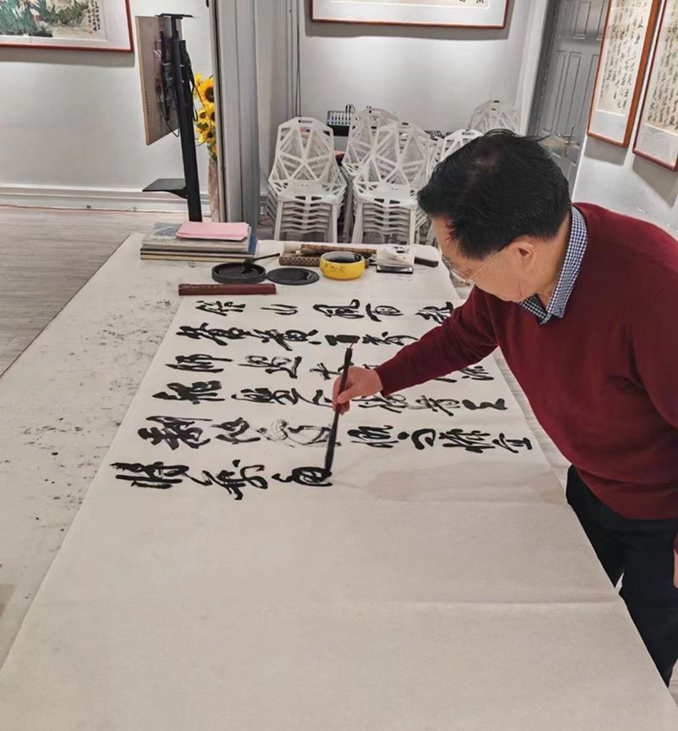 杨俊旺,字思雨,1965年生,秦安县五营镇人,上校军衔,教授。现为兰州市书法家协会副主席。他热爱中国传统文化,2010年出版《杨俊旺书法作品集》,主编的《五营镇志(远古——2020)》于2021年出版。此次展览共展出杨俊旺近两年创作的行、草等近百幅佳作,作品厚重、柔韧、文雅、别致,令观者赏心悦目,流连忘返。