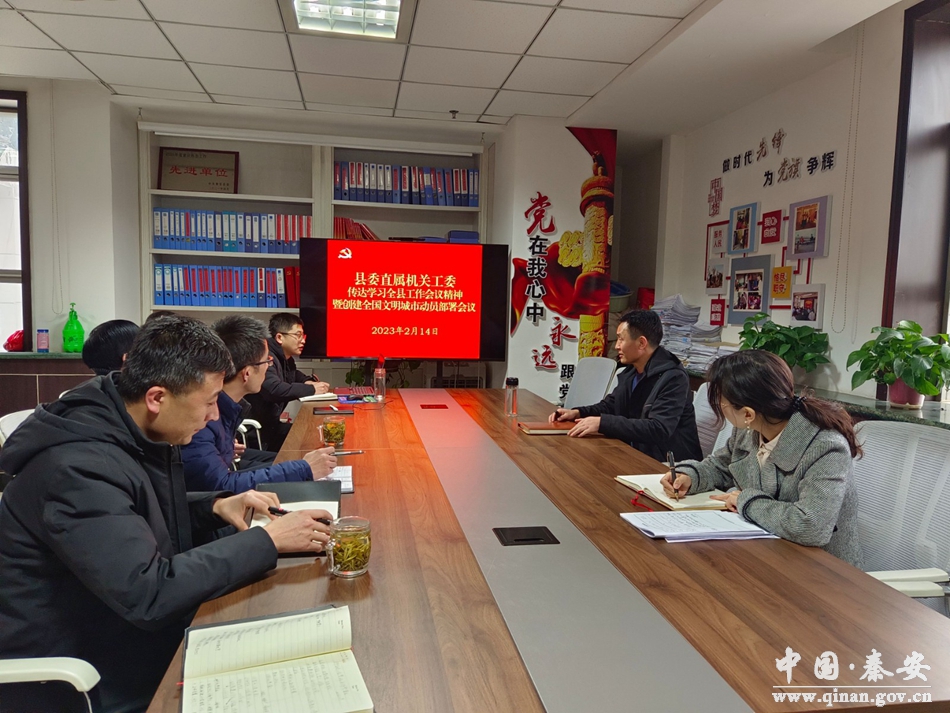 2月13日,秦安县委直属机关工委召开传达学习全县工作会议精神暨创建全国文明城市动员部署会议,认真传达学习全县工作会议精神和全县创建全国文明城市工作动员大会精神,进一步厘清工作重点,结合单位职责实际,研究贯彻落实举措,确保会议精神落地见效。