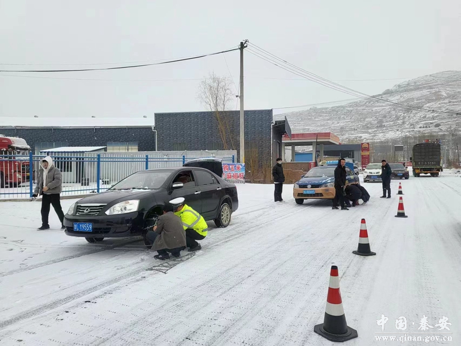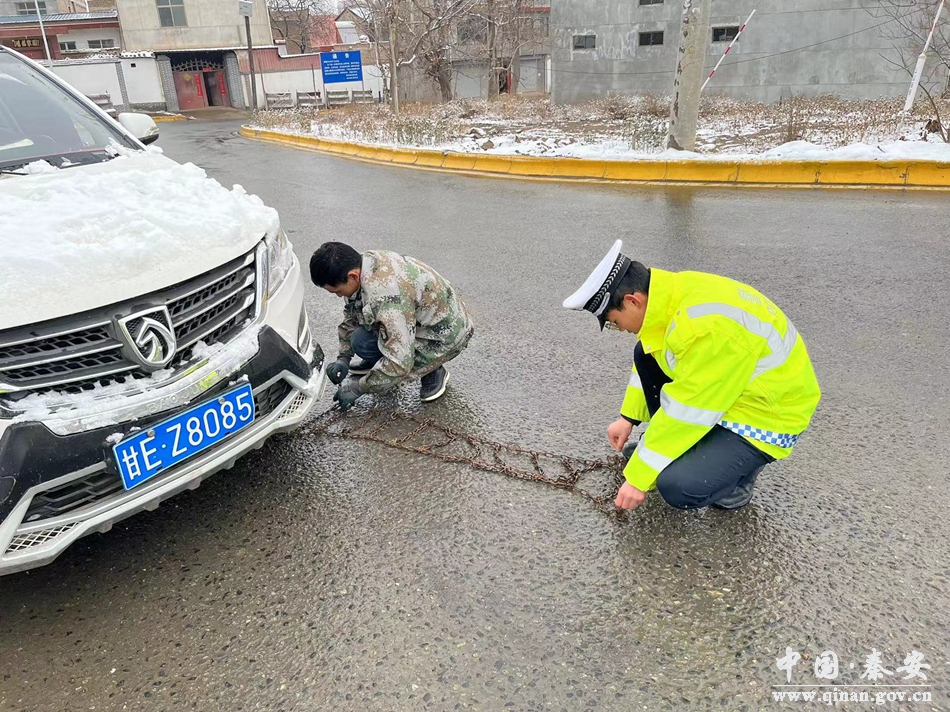 为有效应对冰雪等恶劣天气对交通安全的影响,确保雪天秦安辖区道路交通安全、有序、顺畅。县公安局交警大队负责人第一时间深入王铺梁执勤点,督促过往车辆加挂防滑链,警示广大驾驶人保持安全速度和车距。大队相关负责人深入城区进(出)城路口,协助车主给车辆安装防滑链,以防止车辆出现滑车、溜车等危险情况。并对城区各路段雨雪冰冻天气道路应急处置工作进行现场指导。