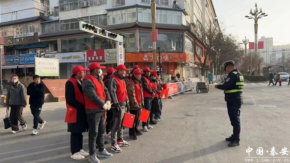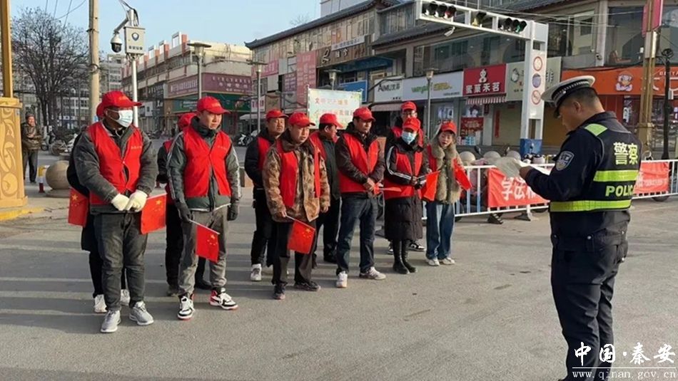12月7日,秦安县公安局交警大队组织辖区内新驾驶人走上街头,在上下班高峰期,开展“车让人、人守规”文明交通劝导志愿服务活动。