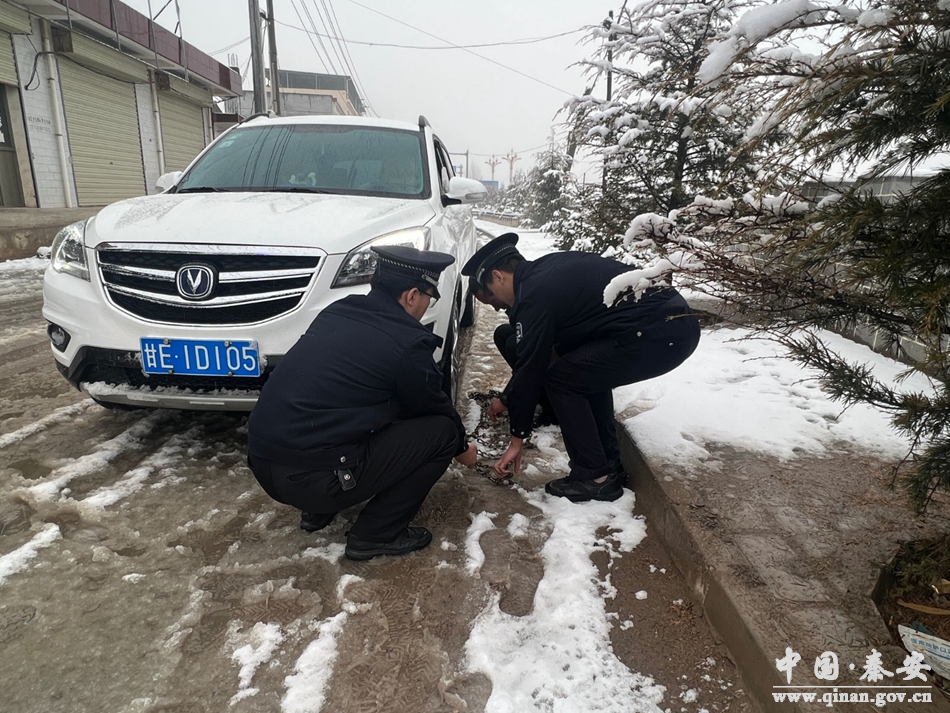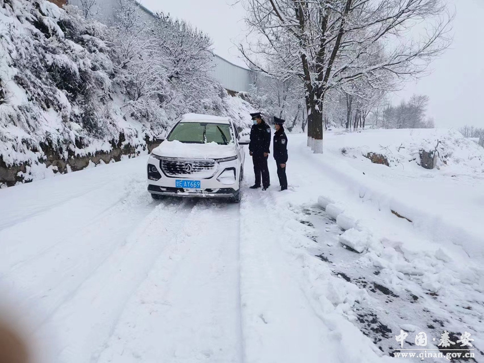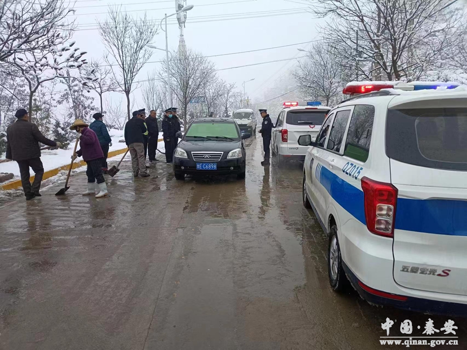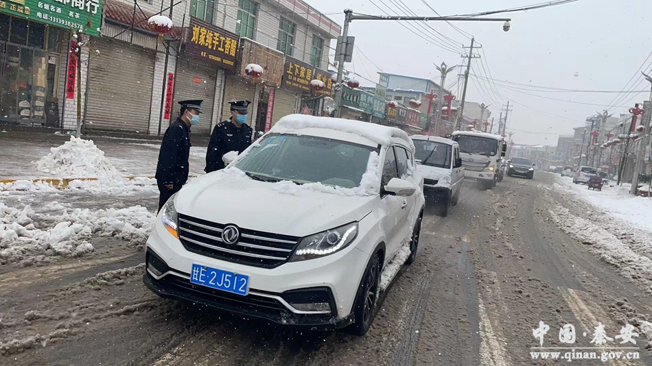 2月8日,秦安县迎来大范围降雪天气。为预防和减少道路交通事故发生,确保道路秩序平稳、有序、通畅,秦安县公安局以雪为令,闻雪而动,启动恶劣天气应急预案,组织警力迅速投入到帮扶救助群众、道路交通疏导、安全隐患排查等工作中。