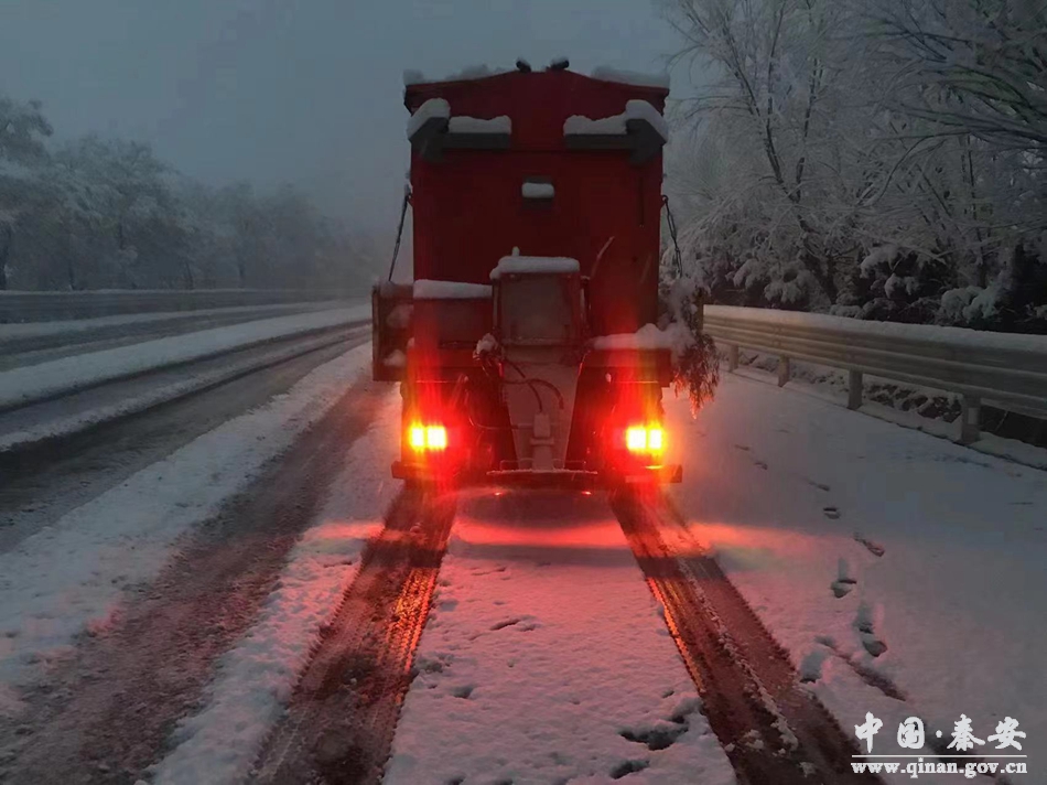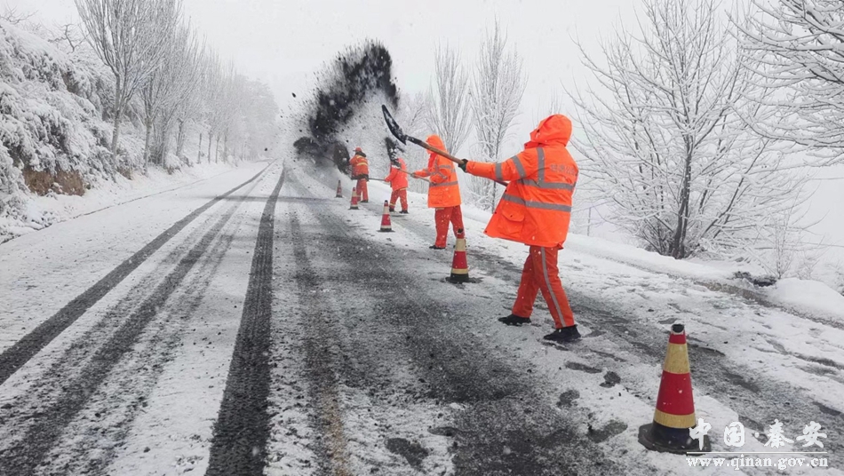 工作中,秦安公路段采用人工和机械相配合的方式,在急弯陡坡等重点路段铺撒融雪剂和防滑料,清除桥梁、路面积雪,全力做好除雪防滑工作,保障人员车辆安全出行。
