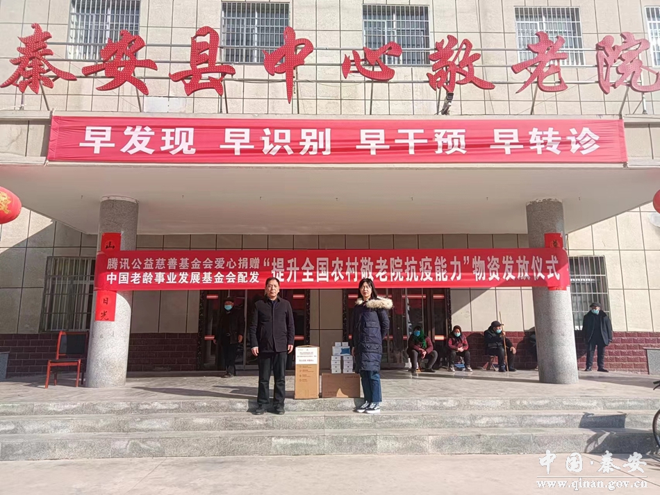 1月30日,秦安县民政局切实做好第一阶段捐赠物资分发工作,第一时间发放到秦安县中心敬老院。敬老院按照养老机构疫情防控相关要求接收物资,并由专业人员通过视频、电话等方式,对敬老院工作人员做好设备的安装、使用进行了培训指导。