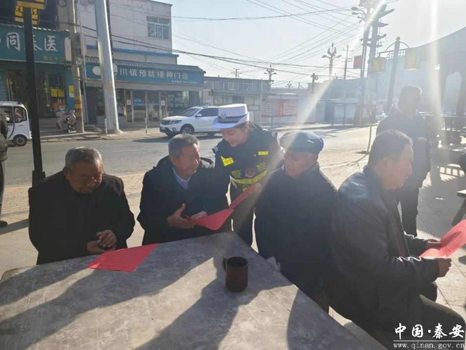 1月9日,秦安县公安局交警大队组织宣传民警走进西川镇辛沟村,开展“美丽乡村行”交通安全巡回宣传教育活动,将交通安全知识送到群众心中。