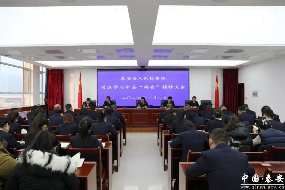 1月8日,秦安县人民检察院召开全院干警大会,传达学习市县“两会”精神。全体干警参加会议。