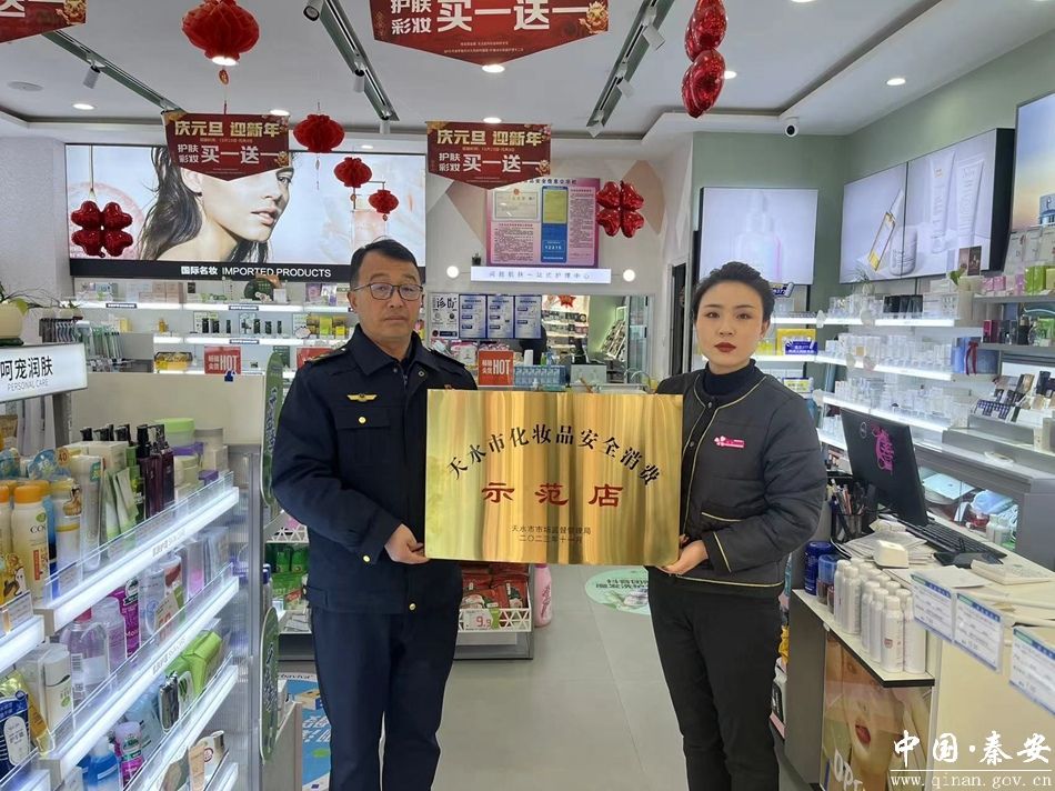 1月11日,秦安县市场监管局为辖区百变佳人化妆品四分店颁发了“天水市化妆品安全消费示范店”牌匾,进一步提升化妆品经营行业的服务水平和整体形象,规范化妆品经营行为,发挥典型示范引领作用,切实保障人民群众用妆安全。
