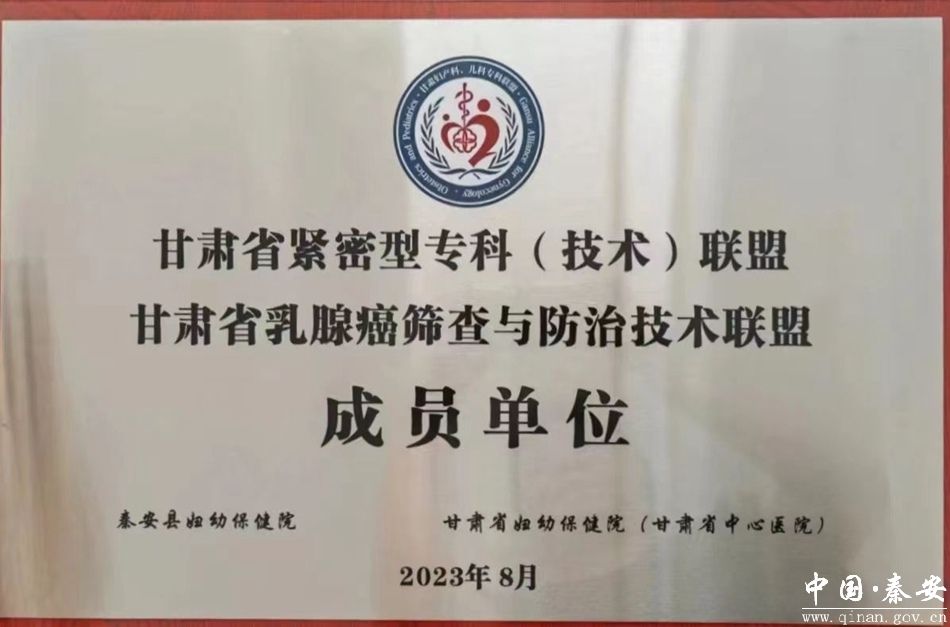 据了解,近年来,秦安县妇幼保健院不断依托乳腺专科联盟在医疗、教学、科研和管理等领域的优势,通过双向转诊,学术交流、专家坐诊、远程诊疗等方式,加强医疗资源共享,为进一步提高科室建设和县域内妇女健康水平起到积极的促进作用。2023年8月,在甘肃省乳腺癌筛查与防治技术联盟会议上,秦安县妇幼保健院正式成为“甘肃省乳腺癌筛查与防治技术联盟分中心”。