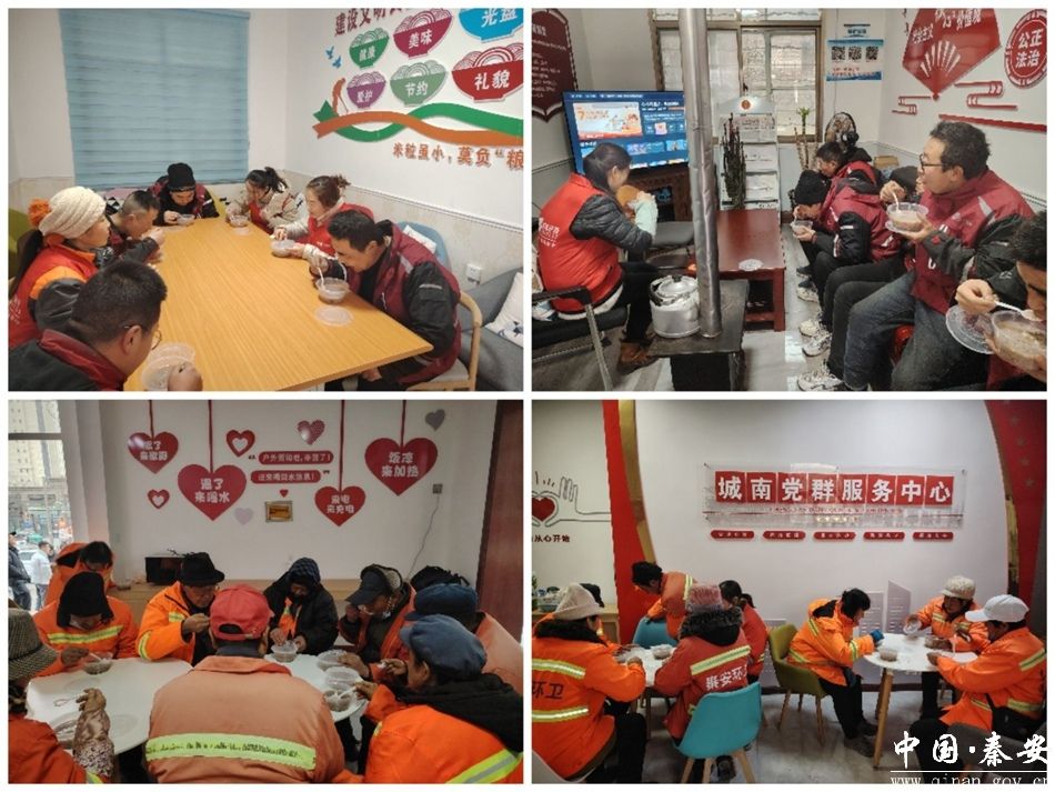 “感谢县总工会,时刻想着我们环卫工人。一大早让给我们吃到了腊八粥,我们心里感觉暖烘烘的。”一位刚刚完成清扫工作的环卫工人笑着说。