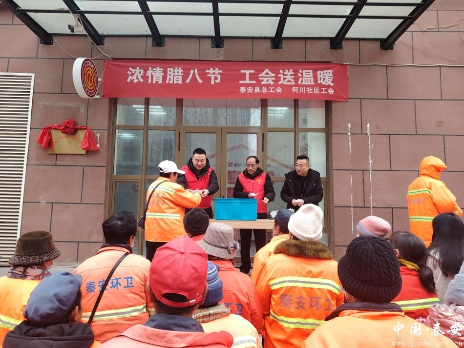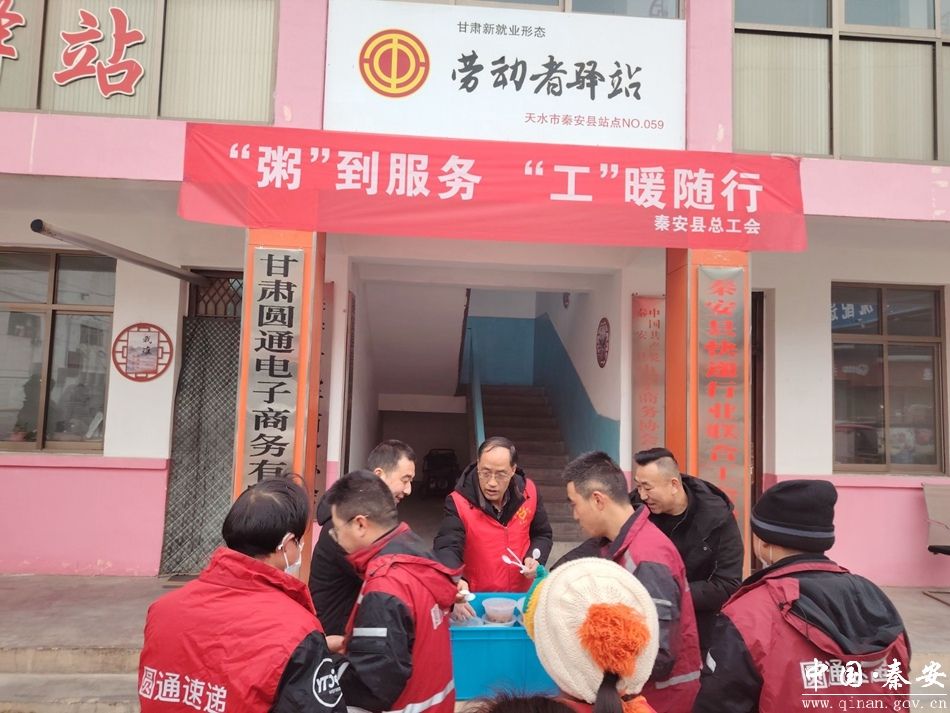农历腊月初八是我国传统腊八节。为了给节日期间坚守在一线工作的户外劳动者们送去一份关怀和暖意。1月18日上午,秦安县总工会联合爱心企业云鼎酒店在联合快递公司、何川社区开展为新就业形态劳动者和环卫工人“‘粥’到服务 ‘工’暖随行”志愿服务活动。
