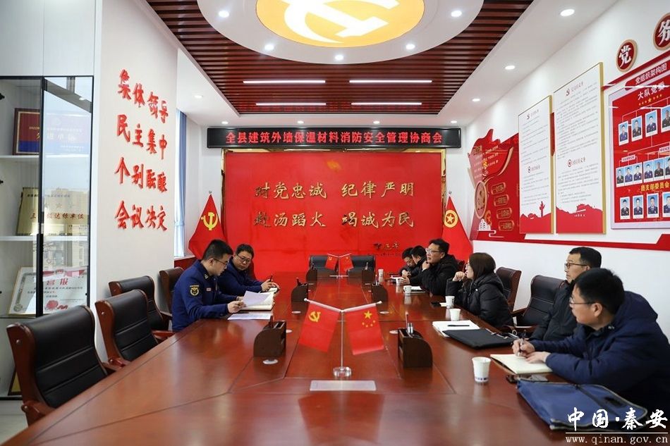 1月18日,秦安县消防救援大队组织召开全县建筑外墙保温材料消防安全管理协商会议,县住建局、商务局、工信局、文旅局、市场监管局等相关部门负责人参加会议。