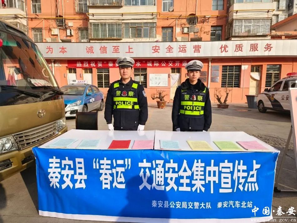 1月26日,秦安县公安局交警大队组织民辅警开展“平安春运 交警同行”交通安全宣传教育活动,积极引导群众安全文明出行。