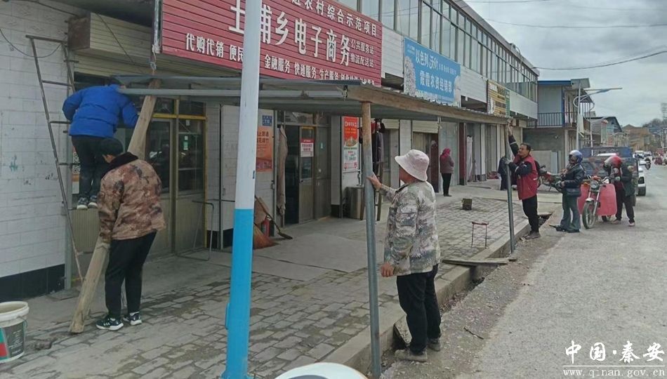 王铺镇组织综合执法大队、派出所、交管站等部门联合开展镇区环境秩序整治暨经营商铺“三包一规范”行动(即:包卫生、包美化、包设施、规范经营秩序),行动组沿靖天路沿线,以规范道路交通秩序、清理占道经营摊点、拆除破旧违规广告牌为重点,对主干道两侧商铺出店经营、乱搭乱建、乱停乱放、破旧广告等行为进行规范整治,在全镇掀起了镇区环境秩序大整治高潮。