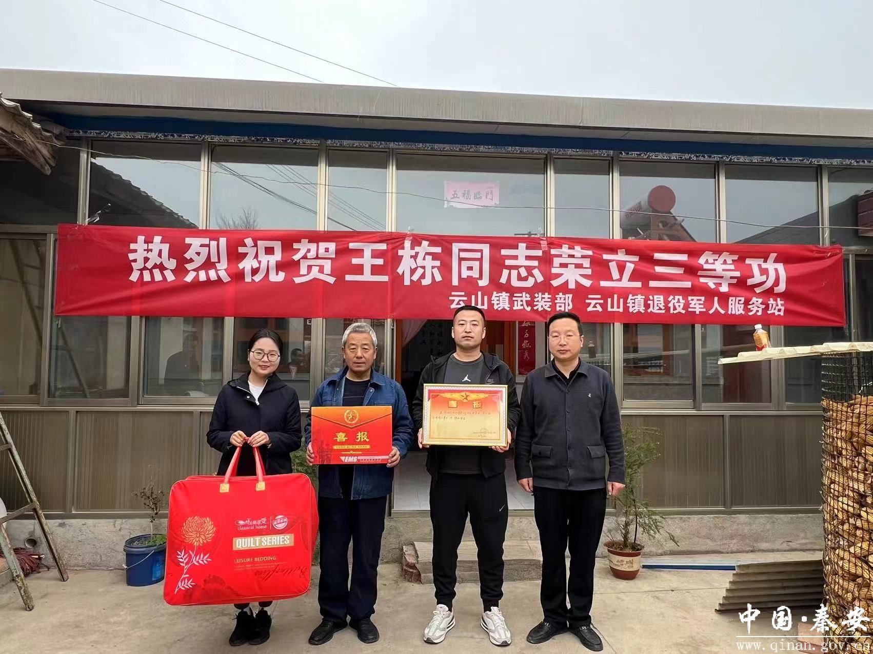 为弘扬拥军优属光荣传统,增强军人荣誉感和家属自豪感,营造尊重关爱功臣模范的社会氛围,4月9日,云山镇人民武装部、退役军人服务站为荣立三等功的现役军人王栋、刘斌家属送去获奖喜报和慰问品,把党和政府的关怀和温暖送到军属家中。