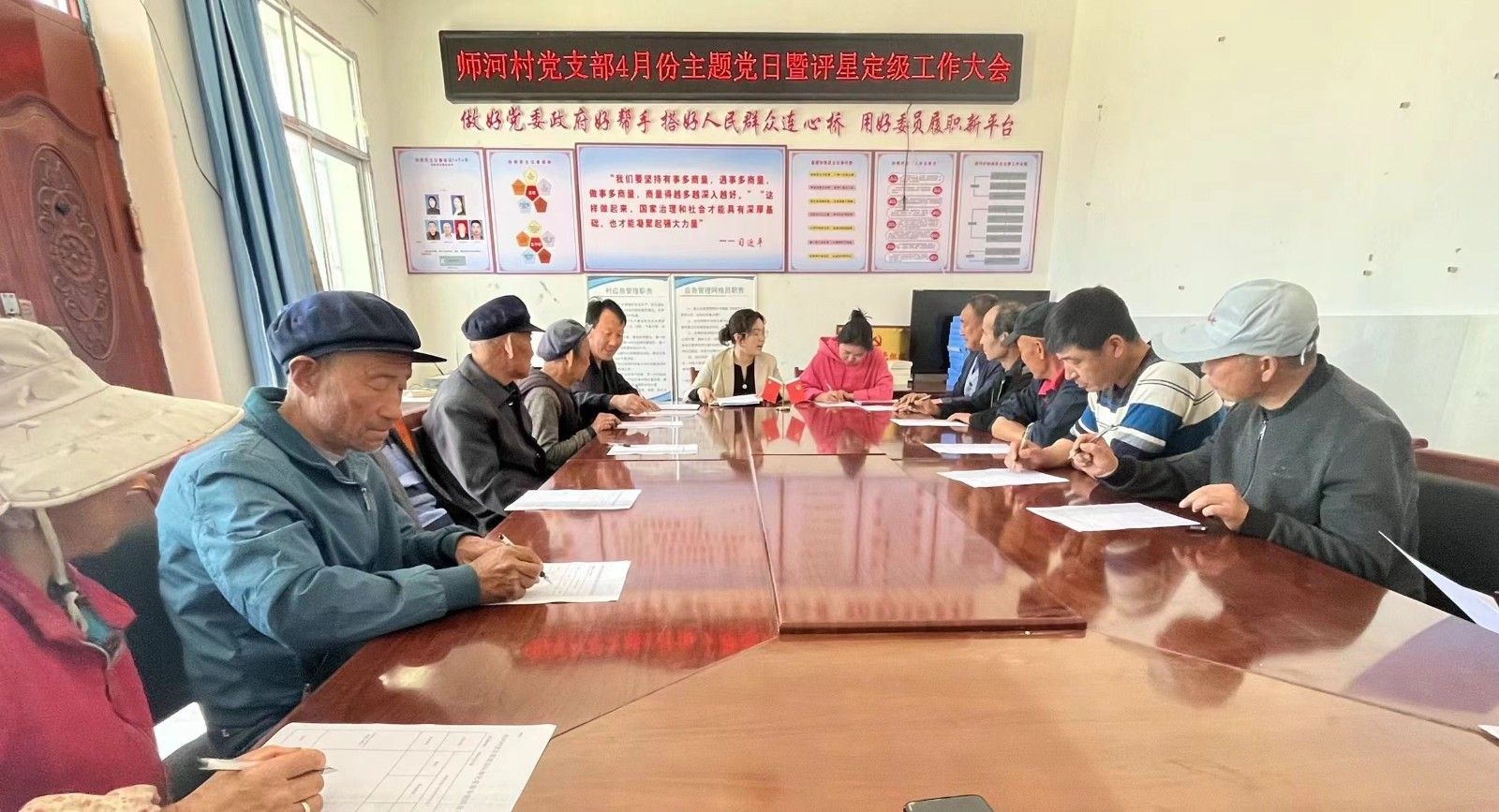 4 月 12 日,叶堡镇的 22 个党支部结合 4 月份主题党日,启动了评星定级的自评“争星”工作。会上,各党支部书记就评定指标、评定程序、评定标准、具体要求以及结果运用等进行了详细解读与安排。同时,还向支部全体党员汇报了上年度的年终考核与“双述双评”工作,以及本年度党支部工作的开展情况、存在问题和下一步计划。参会党员紧紧围绕组织建设、队伍建设、活动开展、日常运行、保障落实、乡村治理、集体经济、人才振兴等八个方面的内容,进行党支部的自评打分,并依据自评得分提出适合本村党支部的星级申报意见。