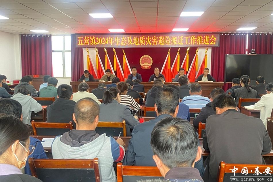 4月18日,五营镇召开2024年生态及地质灾害避险搬迁工作推进会,全体镇领导、镇干部,全体村干部,驻村帮扶工作队第一书记参加会议。