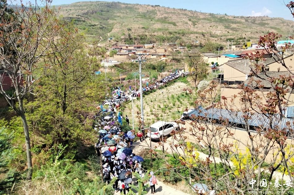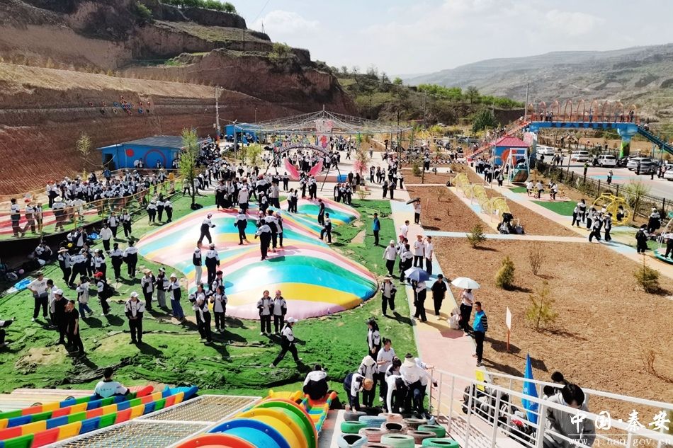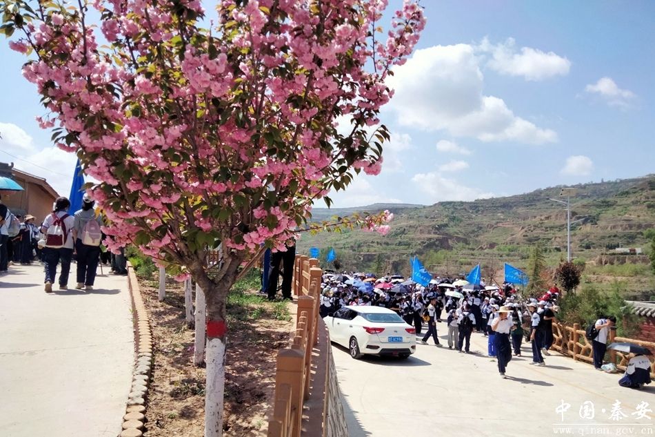 在王尹镇孟河村,秦安一中高二级学生前来游玩踏青,开展研学旅行活动。在郭山村文化广场,学生们三五成群载歌载舞、擂鼓舞狮,欢声笑语回荡的风景如画的美丽乡村。