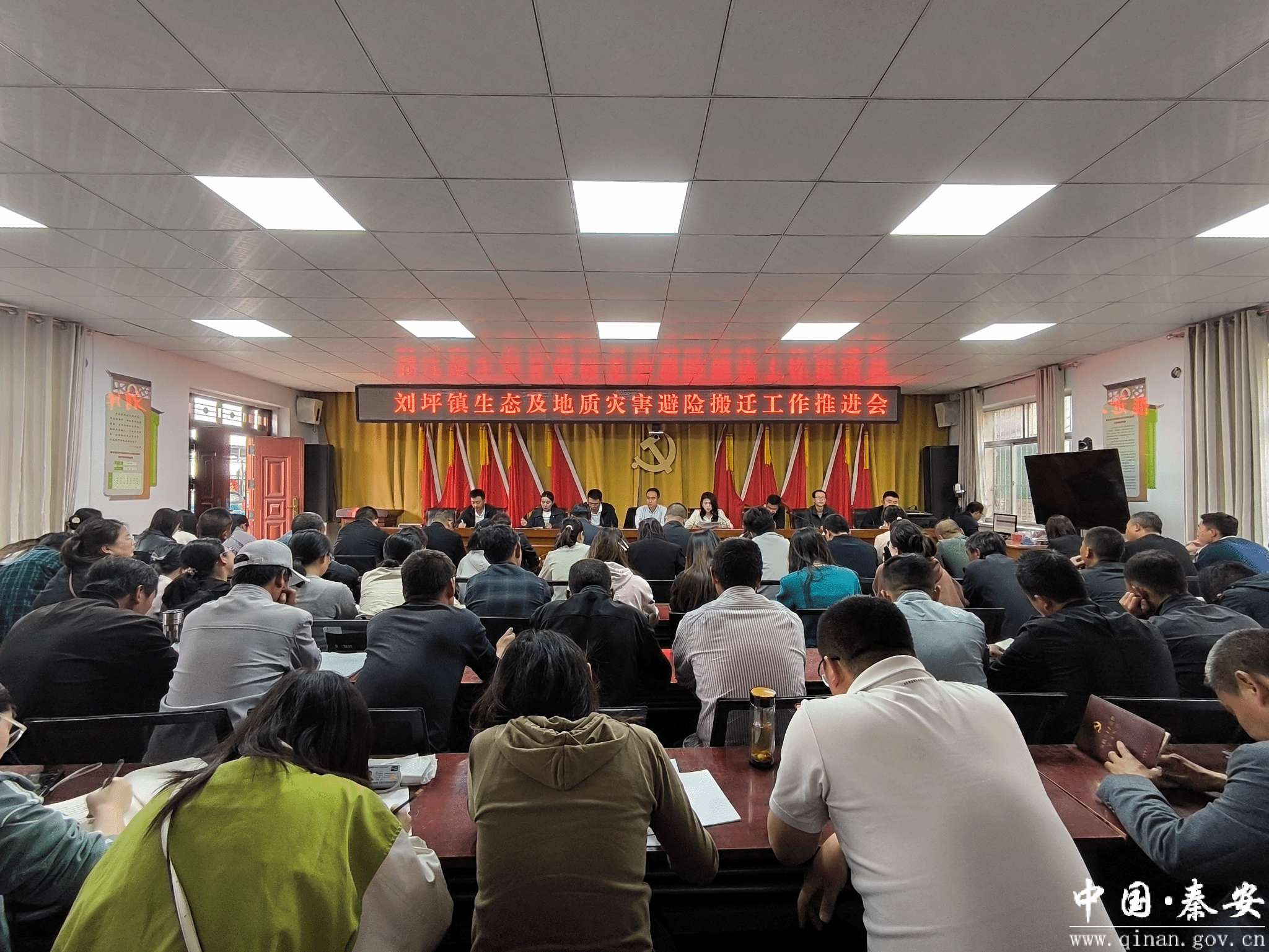 近日,刘坪镇召开生态及地质灾害避险搬迁工作推进会议,镇科级领导、驻村干部、各村党支部书记、各村文书参加会议。