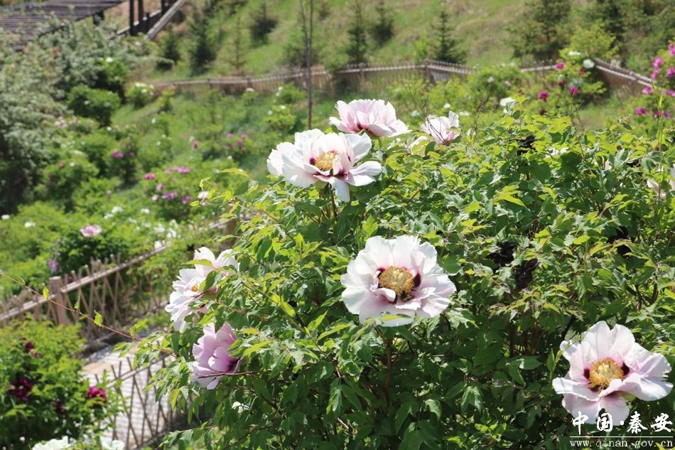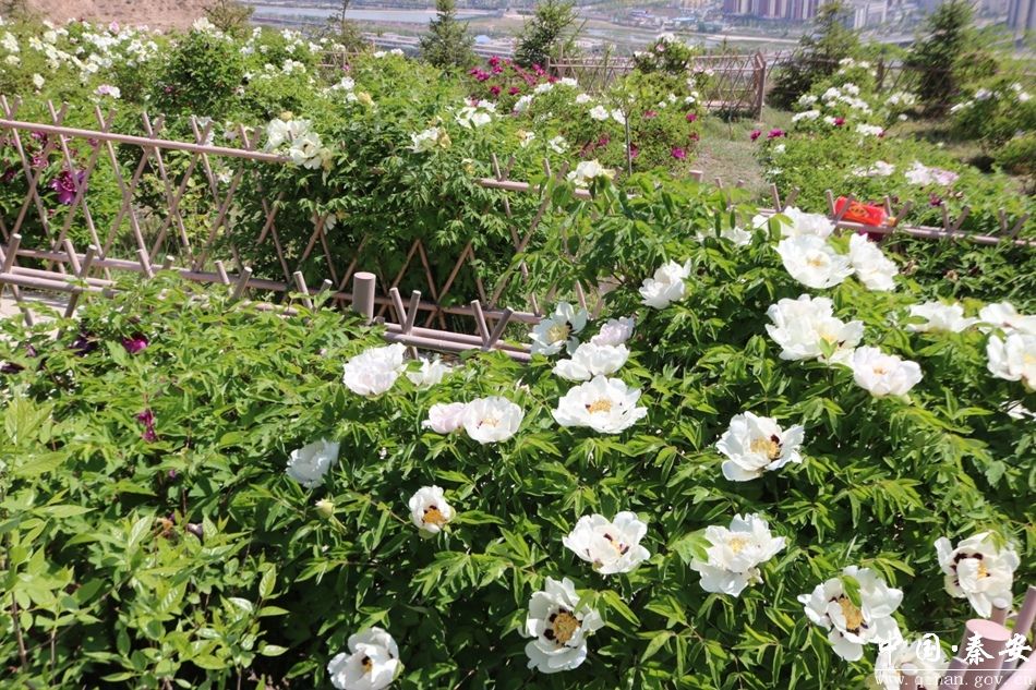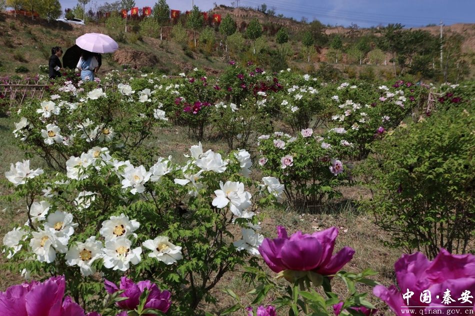鹤山牡丹园,位于秦安县西川镇鹤山生态公园,是按照“十园十景”的模式高标准打造的观赏园之一,属于西川镇打造生态旅游综合体的示范项目,共栽植各类牡丹1500余株。当前,牡丹花争相盛开,有姹紫嫣红的“百园红霞”、紫红的“群芳殿”、雪白的“香玉”,花瓣层层叠叠,宛如层层浪花,在微风中翻涌,展现出无尽的生机与活力,各色牡丹面容娇俏、五彩缤纷、争奇斗艳,犹如一幅连绵不断、精妙绝伦的五彩锦缎。