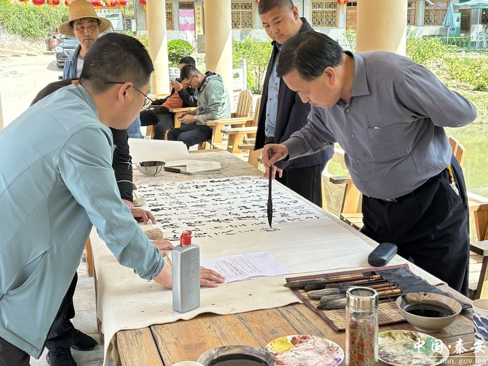 清风徐来,翰墨飘香。五一劳动节来临之际,4月26日,王窑镇在丁山村生态旅游示范点,举办文化惠民暨乡村旅游推荐活动。天水市老年书画研究会副会长张有信,中书协会员、市书协副秘书长刘强,省美协会员、秦州区美协副主席高全生,县文联负责人及王窑镇在家领导、优秀企业家代表、书画名家、村民代表共计100余人参加活动。
