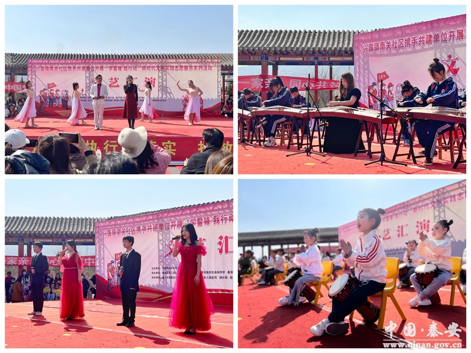 2023年3月5日是第60个学雷锋纪念日,兴国镇南关社区牵头辖区共驻共建单位在葫芦河生态公园新时代文明实践中心开放式活动基地开展传递温暖、弘扬新风志愿服务文艺汇演。此次活动主题为“学雷锋 我行动”。