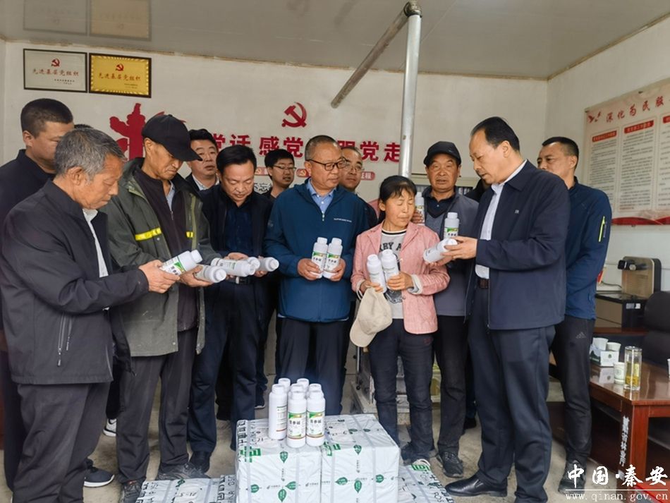 活动当天,省林草局防沙治沙处二级调研员臧杰结合当前党纪学习教育开展了专题党课宣讲,帮扶单位与村两委、驻村帮扶工作队员进行交流座谈,听取了佘王村产业发展情况和乡村绿化美化工作进展情况汇报,并就抓好产业发展、消费帮扶、人居环境整治和村级集体经济进行了深入探讨。在实地查看佘王村花椒种植情况后,帮扶单位为当地群众捐赠了价值5000余元的7箱农药,并现场开展了花椒树病虫害防治和科学用药相关技术培训。