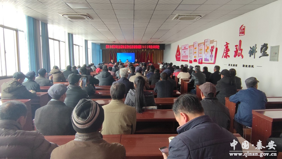 3月2日,王尹镇召开国家乡村振兴重点帮扶县秦安县科技特派团2023年技术培训会,省农科院、市农科所、县农业农村局相关专家进行现场讲解,镇全体护林员、公益性岗位人员参加培训。