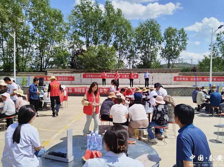 活动中,镇新时代文明实践所邀请全镇光荣在党50年老党员、结对关爱对象、“三留守”人员、特殊困难群体等,一边观看广场舞、小品等精彩文艺节目演出,一边品粽子,吃白脆瓜等时令水果。同时,五营卫生院医生为参加活动的老人进行了爱心义诊。此外,镇新时代文明实践所联合司法所、派出所开展了法律宣传、反电信诈骗、禁毒宣传活动。