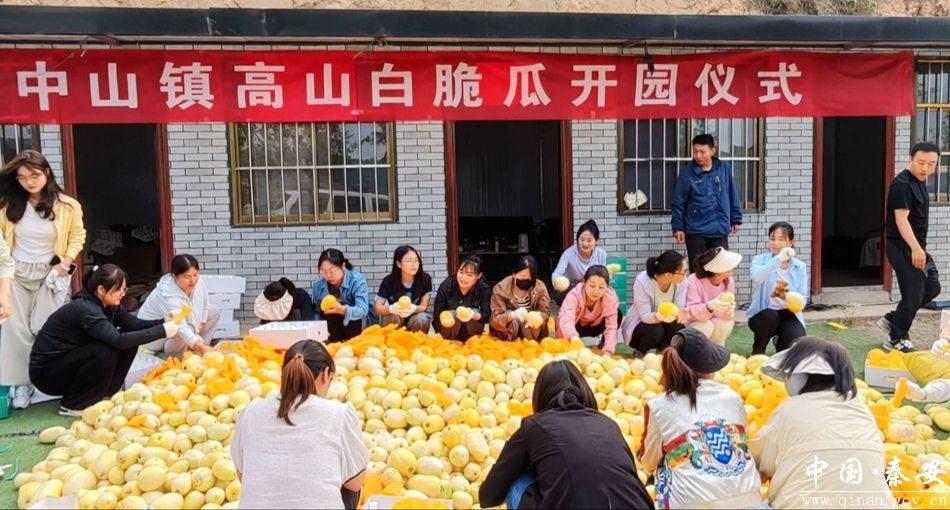 6月17日,中山镇在景家流域种植基地举行高山白脆瓜开园仪式。