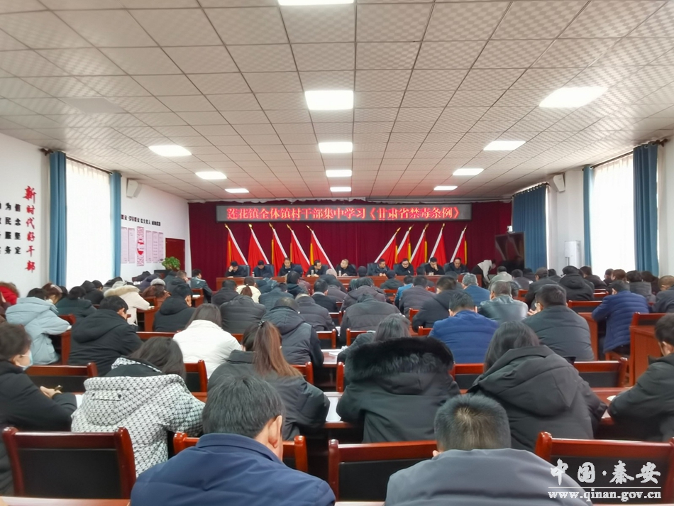 为进一步做好《甘肃省禁毒条例》的学习宣传和贯彻实施,增强全镇干部知毒、识毒、拒毒、防毒、反毒的能力,全面提升禁毒工作水平,切实增强禁毒责任意识,营造浓厚的学习氛围,夯实禁毒工作基础。2月20日,莲花镇党委、镇政府组织全体镇村干部集中学习《甘肃省禁毒条例》。