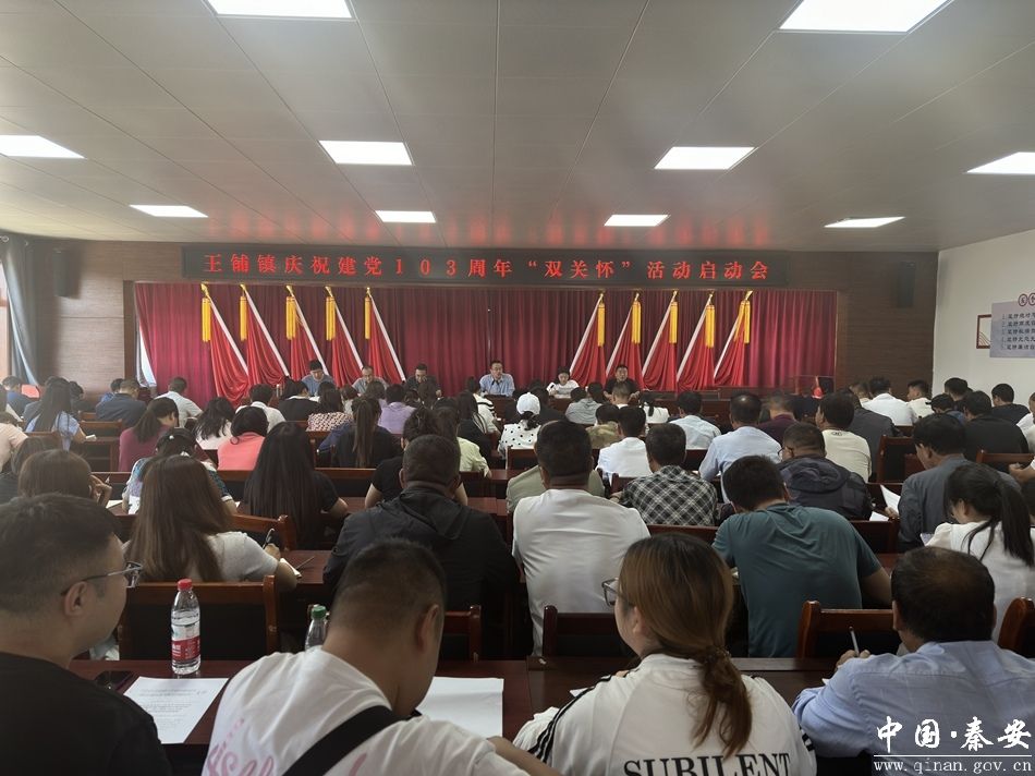 为庆祝中国共产党成立103周年,教育引导广大党员进一步提高党性修养,增强党员意识,强化党性观念,6月24日,王铺镇党委召开镇村党员大会,启动以“凝党心、聚人心,传承红色基因,践行为民初心”为主题,以“机关党员结对关怀农村困难党员、农村党员结对关怀农村困难群体”为主要形式的“双关怀”活动。