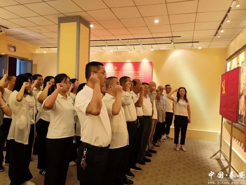 在解放纪念馆,社区党员和共驻共建单位党员在鲜红的党旗下,庄严宣誓,重温入党誓词,用铮铮誓言镌刻下自己对党忠诚和为党的事业奋斗终身的信仰和决心。随后,跟随讲解员走过纪念馆内的“红25军长征过秦安,秦安地方党组织,大军西指—解放秦安,继承光荣传统–建设美好秦安”四个展区,聆听讲解员对解放秦安等历史的详细解读,进一步了解发生在秦安的革命历史,追忆革命先烈的高贵品质。参观后,党员们表示在未来的工作和生活中,立志继承先烈遗志,坚定理想信念,赓续红色基因,大力发扬革命精神,从党的光辉历史中汲取奋进力量,践行初心使命。