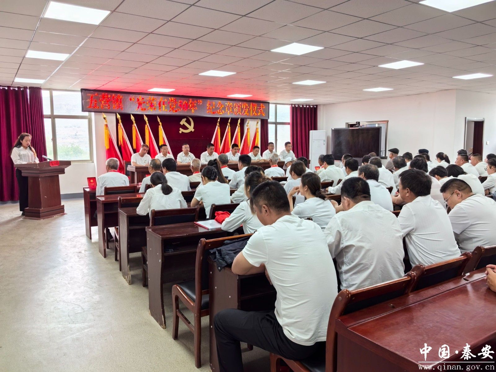 在中国共产党成立103周年之际,7月1日,五营镇举行庆祝中国共产党成立103周年活动。全体镇领导、各村党支部书记、“光荣在党50年”党龄纪念章获得者共计70余人参加活动。