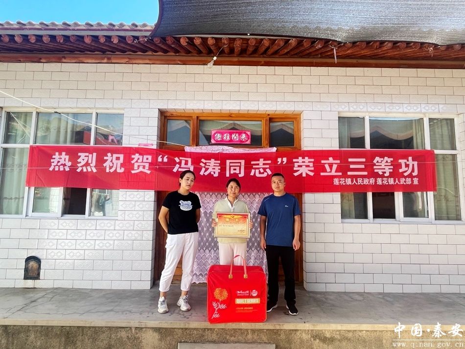 一人参军,全家光荣。为弘扬拥军优属光荣传统,切实增强军人自豪感、荣誉感和归属感,近日,莲花镇开展立功送喜报活动,为辖区内郭文亮、冯涛2名立功受奖现役军人家属送上喜报、慰问品,并向立功家属表示祝贺,为他们带去党和政府的关怀,以实际行动大力营造拥军优属的良好社会氛围。