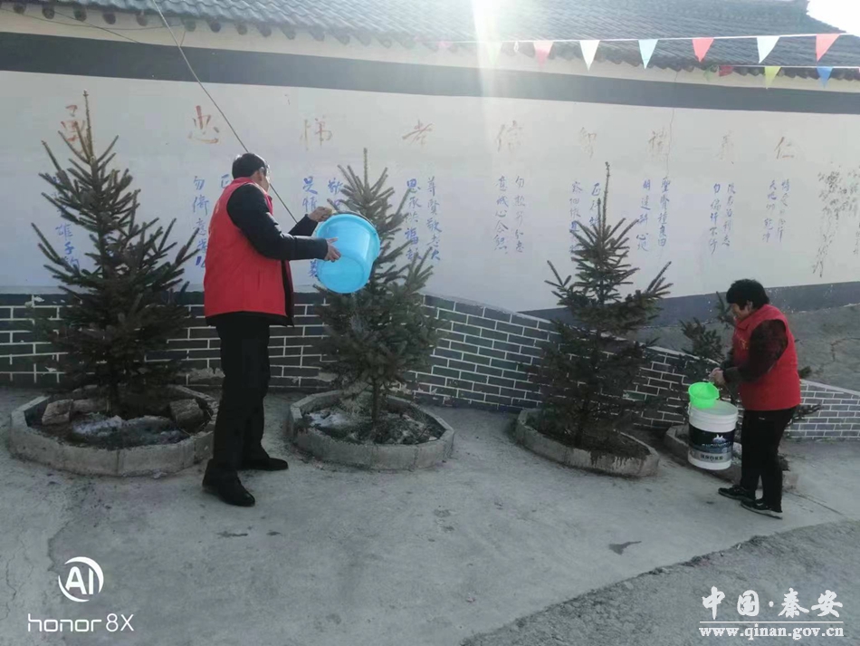 刘坪镇组织护林员、公益性岗位、党员群众参与到行道树管护浇水工作当中,对省道220线、秦洼景区、周湾景区及各村主干道两侧行道树、村委会周边绿化带进行浇灌,全面开展行道树浇水保墒工作。